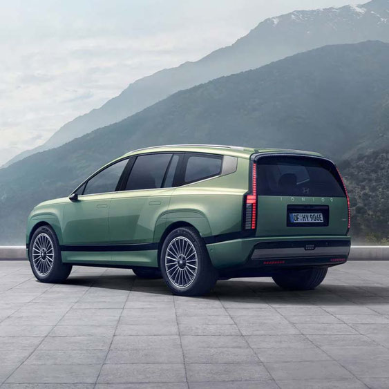 Der neue Hyundai IONIQ 9 vereint auf elegante Weise modernes Design mit innovativer Elektrofahrzeug-Technologie. Sein elegantes, „aerosthetisches“ Exterieur versteht es, aerodynamische Innovation mit futuristischem Stil zu verschmelzen.
